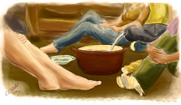 This is a narrative poem about a special meal cooked between friends in a cabin when we were all young, just out of school.
